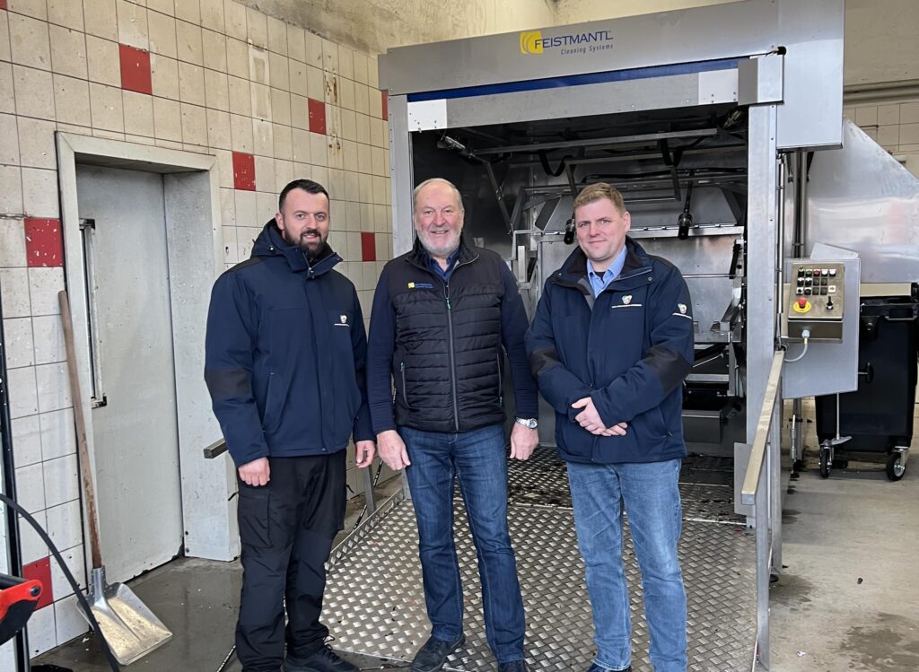 Manfred Feistmantl übergibt an Andre Wolter und Ilir Bekjiri von den Stadtreinigern Hamburg, die erste von vier bestellten Behälterreinigungsanlage Modell…